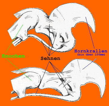mit den Krallen verbunden ist und wie diese Aufgebaut sind (Schnittdarstellung).