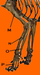 Kamm (1), unguicularer Fortsatz (2), Krallenplatten (3), Tatzensohle (4),