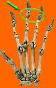 Beugertuberkel (5), untere Krallenbeugemuskelsehe (6), mittlere Knochenphalanx